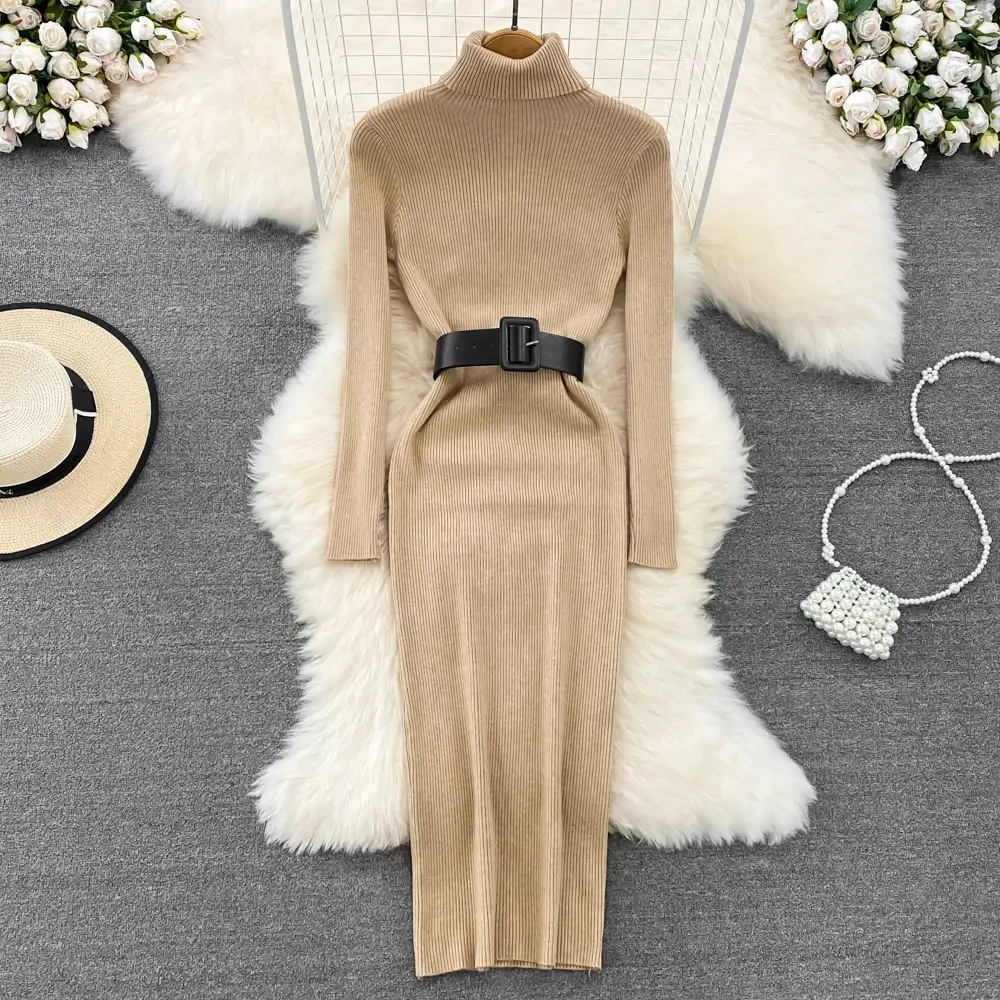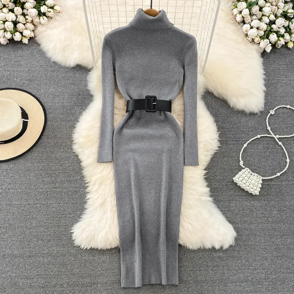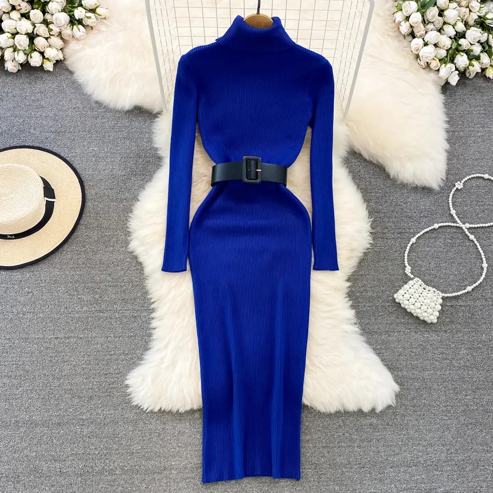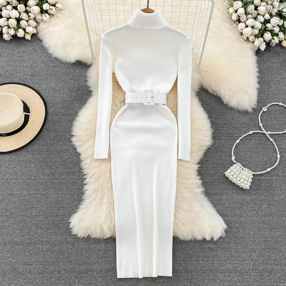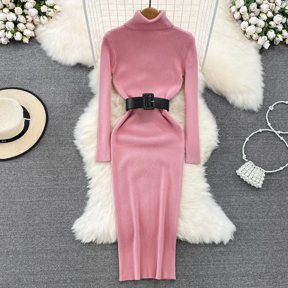 الصفحة الرئيسية اثاث فستان نسائي محبوك أنيق بحزام